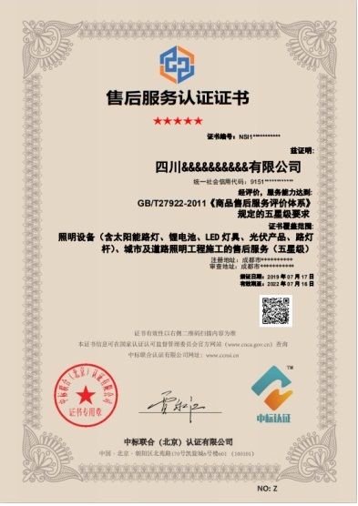商品售后服务认证,是我国自主创新的服务认证项目,开拓了服务认证的崭新领域。认证主要是依据《商品售后服务评价体系》国家标准和有关技术文件,对企业服务能力进行审查,并得出相应的认证结果(星级)。认证过程采用的是评分制,按照标准和有关的要素进行打分,最终以分值决定星级。