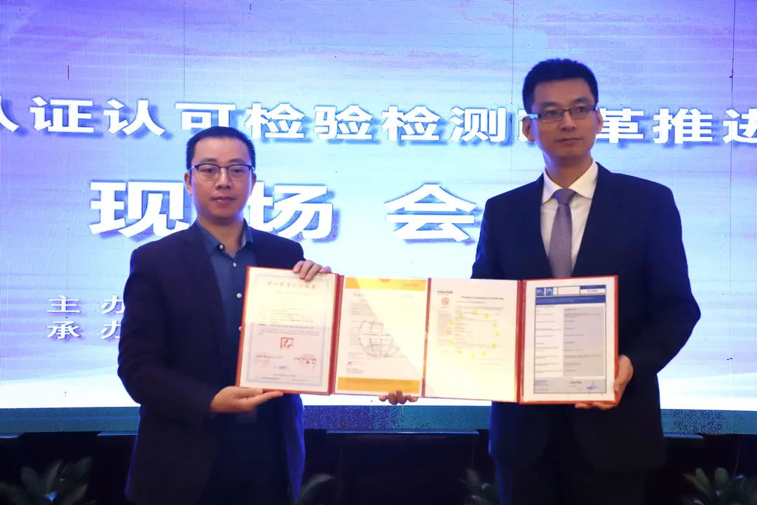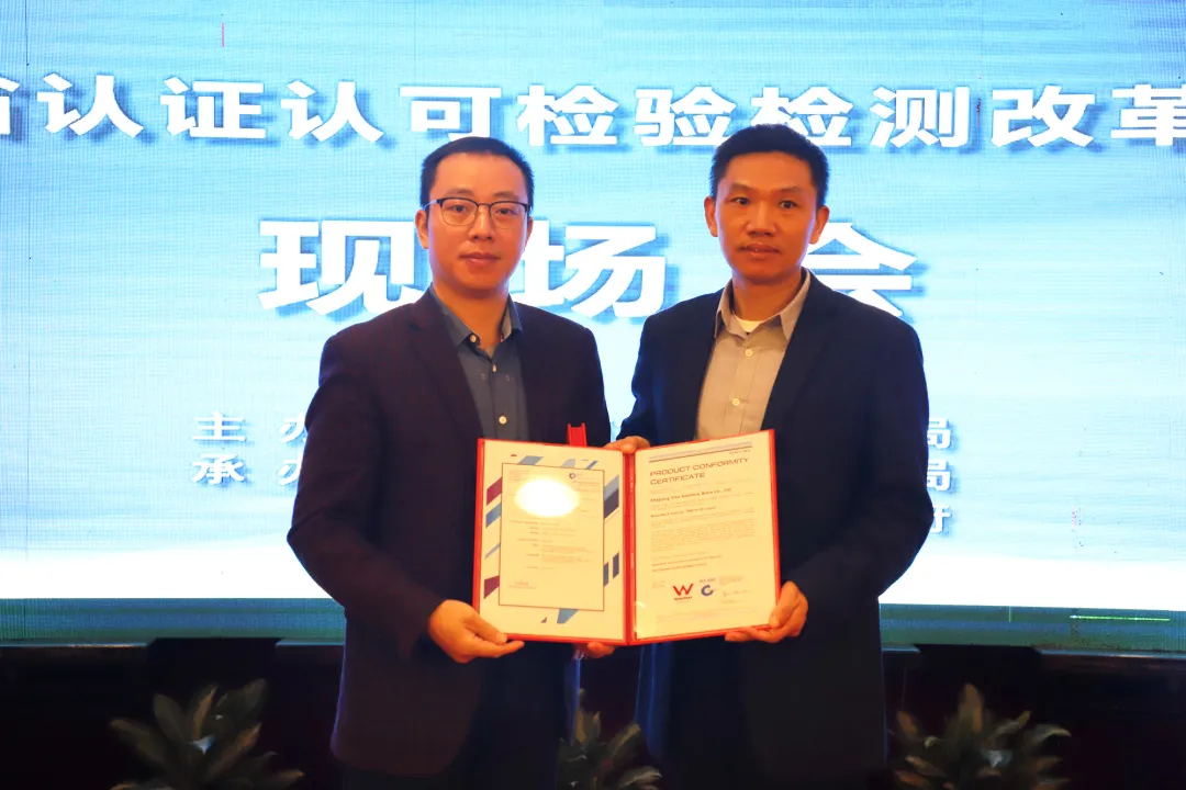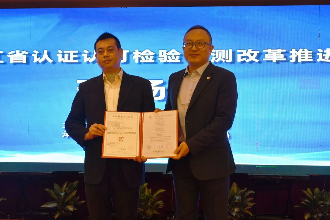 2020年11月27日,浙江省认证认可检验检测改革推进现场会在台州椒江召开,通过“一次认证,多机构联合发证”的VCR分享、“浙江制造”[1+N]认证模式讲解,发布了“浙江制造”[1+N]认证项目的创新举措和现行成效。现场还为3家企业分别颁发了“浙江制造”[1+N]认证证书,其中宁波方太在通过“浙江制造”认证的同时完成了CCC产品的发证;嘉瑞福(浙江)家具取得“浙江制造”认证证书和绿色产品认证证书;浙江怡和卫浴通过“一次现场审核,多机构联合发证”获得了ETL、CE、CB、Watermark、RCM、NF和“浙江制造”共7张国内外认证证书,认证总成本从49.5万元减少至21.8万元,降低56%;认证总申报材料从536份减少至154份,减少71%,认证时间从一年压缩到半年。